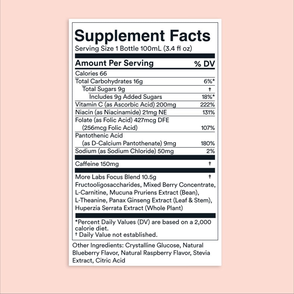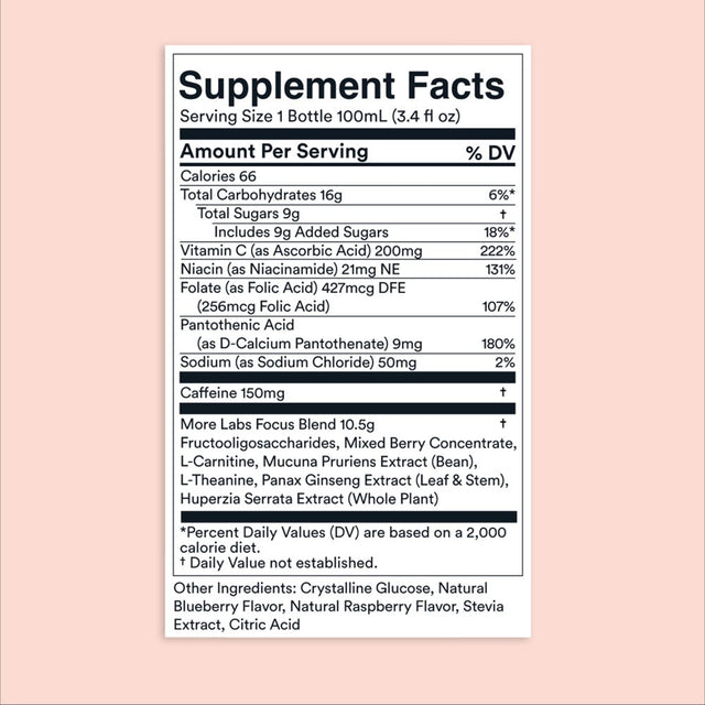 More Labs Liquid Focus, Nootropic Smart Drink with Powerful Antioxidants and Adaptogenic Herbs for Energy and Concentration, Energy Shot, 150Mg Caffeine - 12 is backordered and will ship as soon as it is back in stock.