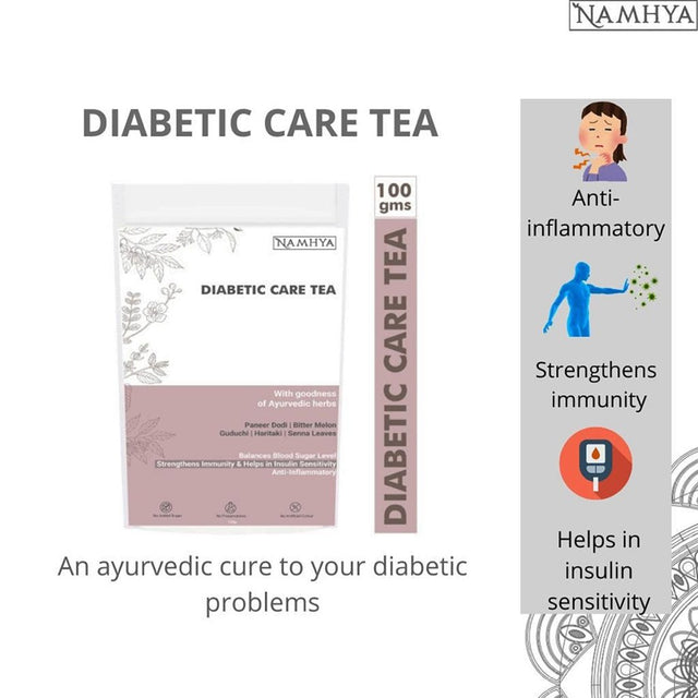 - PRODUCT – USFDA registered Namhya Diabetes Care Tea. With the right blend of Paneer Dodi, Bitter Melon, Guduchi, Haritaki, Senna leaves and other Ayurvedic herbs, this tea helps to balance the blood sugar levels, strengthen immunity, support healthy glucose levels, improve insulin regulation, assists in digestive issues, enhance liver functions and reduce inflammation.