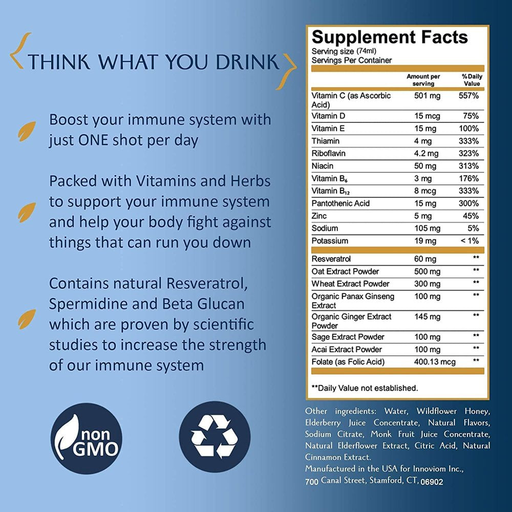 - PACKED WITH VITAMINS: In addition to Vitamins C, D, E, B6 & B12, each immunity shot is loaded with organic herbs, ginger, zinc, Panax ginseng, and elderberry