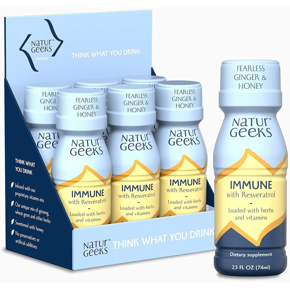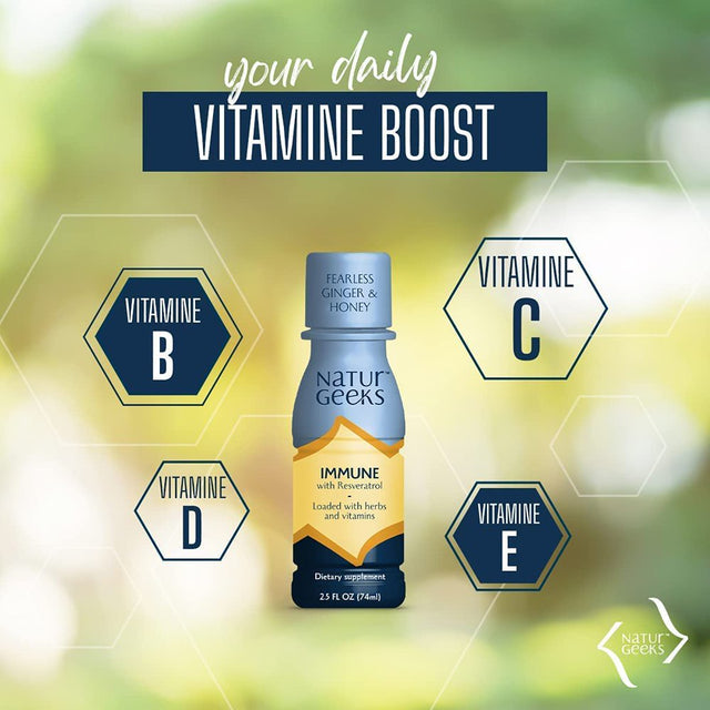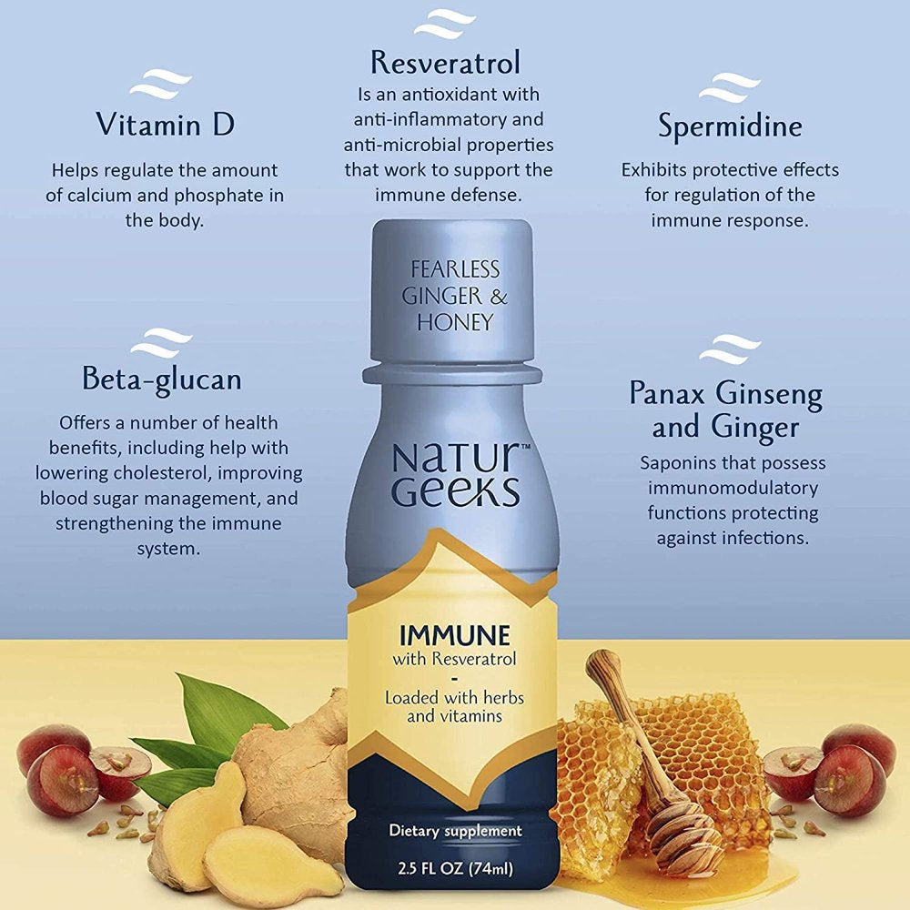 NATURGEEKS Immune Shot, Ginger Honey Flavor, Resveratrol & Spermedine Infused, Vitamins & Herbs