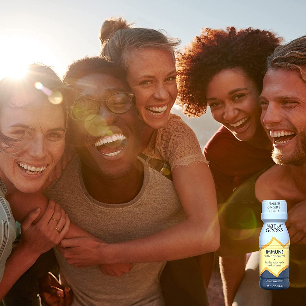 NaturGeeks Immune is a proprietary 2.5 oz functional beverage shot, is specifically created to help support your immune system. Everything you need to help boost your immune system is packed into this one small bottle. It contains natural Resveratrol, Spermidine, Beta-glucan, which are proven by scientific studies to increase the strength of our immune system and all required vitamins and herbs to help resist various viruses.