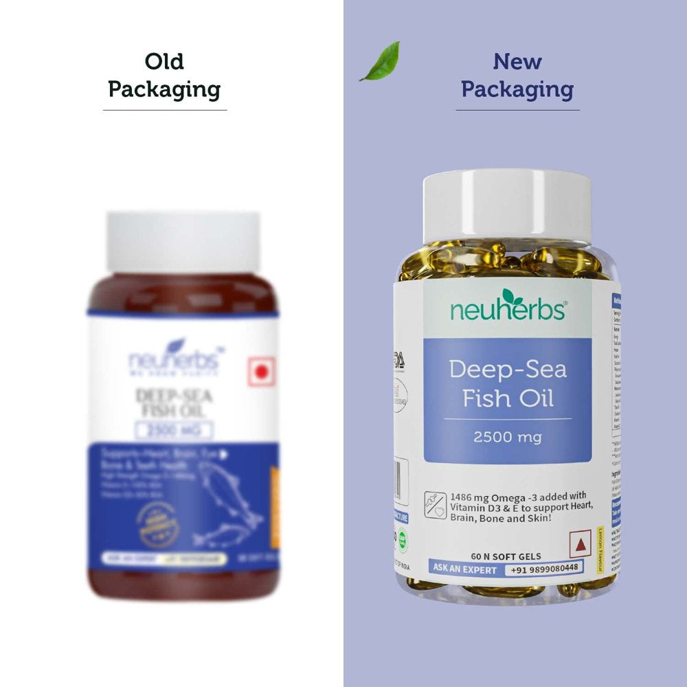 Neuherbs commitment is to improve the quality of life. To fulfill your body’s Omega 3 needs, Neuherbs has brought to you Deep-Sea Fish Oil 2500mg, formulated with innovation to address modern lifestyle health issues and to target desired results. It contains high potency Omega 3 Fatty Acids (EPA+DHA) with absorbable Vitamin E (d alpha tocopherol) and Vitamin D3 that makes it a perfect solution to support your heart, brain, eye, bone, and teeth health. We understand the needs of consumers health, thus we aim to develop the best quality based pure products.