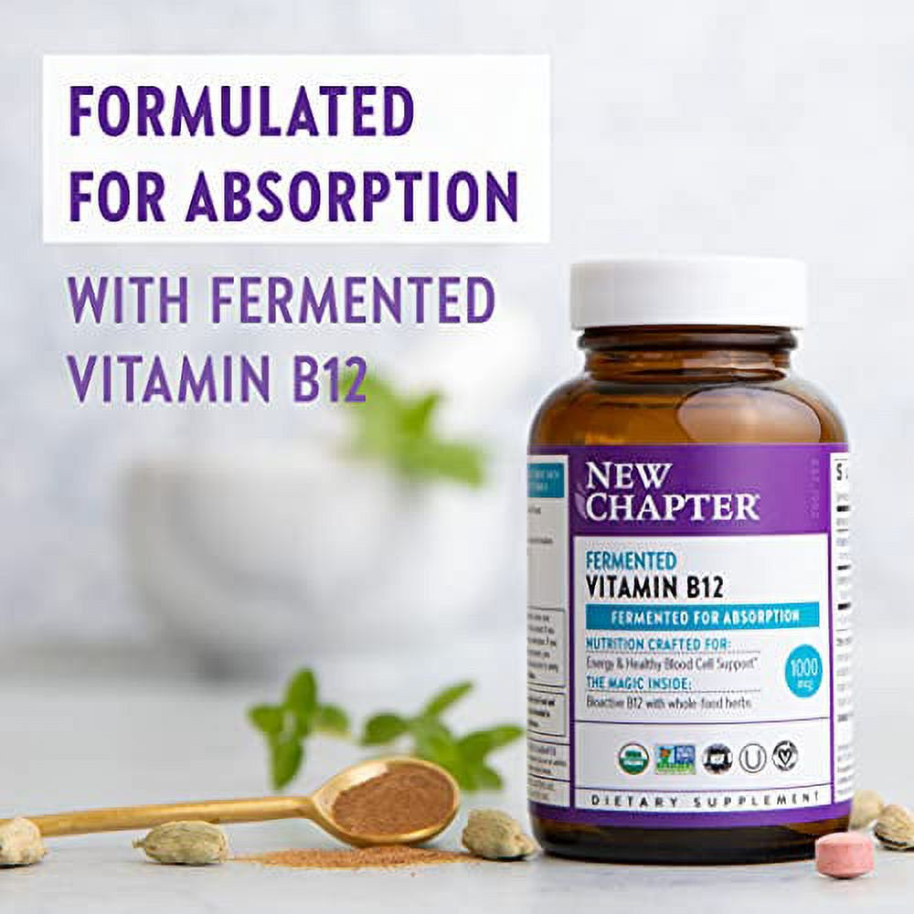 New Chapter Vitamin B12, Fermented Vitamin B12 1,000 Mcg, Organic, ONE Daily with Whole-Food Herbs + Adaptogenic Maca for Natural Energy + Healthy Blood Cells, 100% Vegan, Gluten-Free - 60 Count is backordered and will ship as soon as it is back in stock.