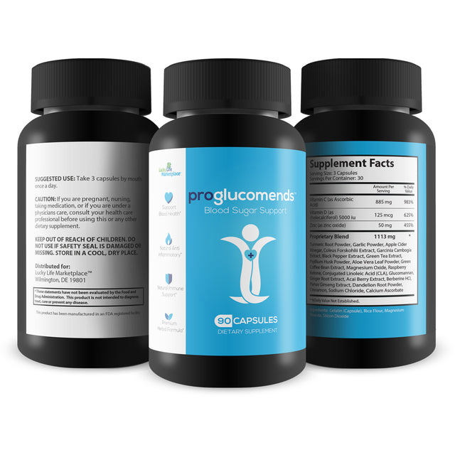 Pro Glucomends Pills contain Cinnamon, Berberine, & Zinc which have shown in studies to help support blood sugar levels already within the normal range by promoting reducing insulin resistance in the body. Many of the ingredients have antioxidant properties for natural immune support and to protect cells from free radical damage. This natural blood heath supplement also contains Turmeric, Ginger, Green Tea, & Black pepper to help reduce inflammation from oxidative stress. It’s encouraged to combine supplementation with a healthy diet and exercise to maximize the health benefits.