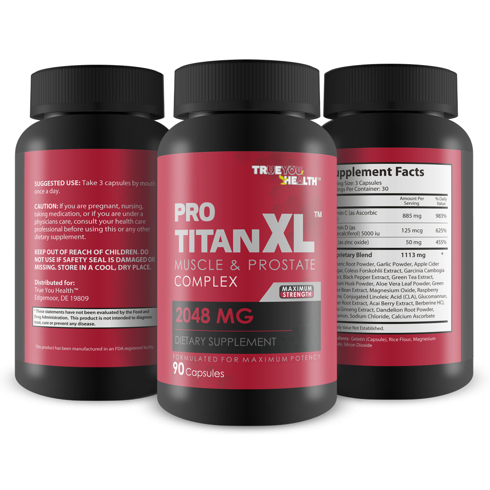 Pro Titan XL Prostate Complex is a comprehensive prostate supplement designed to promote prostate health, normal prostate size, and healthy prostate function. The maximum strength prostate formula contains 20+ vitamins, minerals, herbs, and antioxidants to provide total male prostate support with additional health benefits.