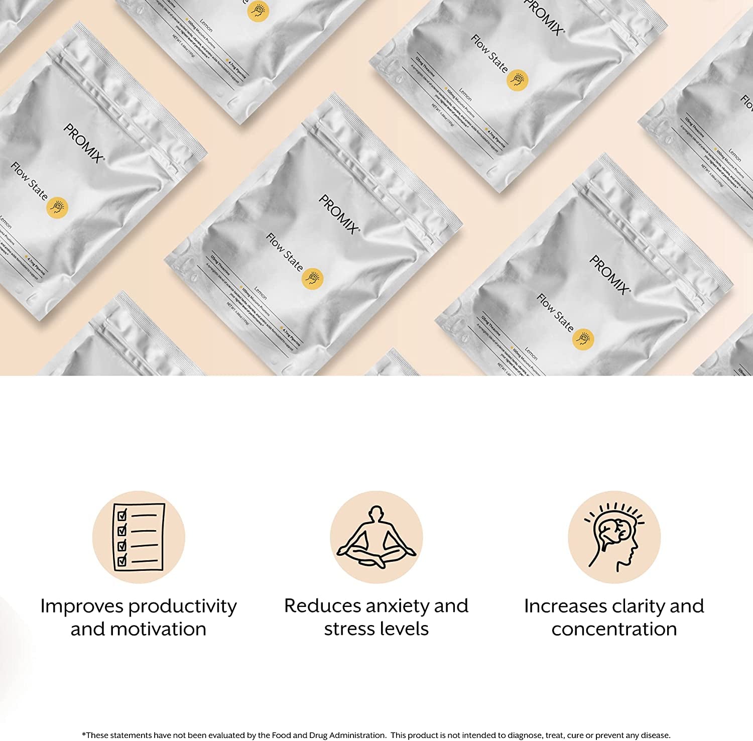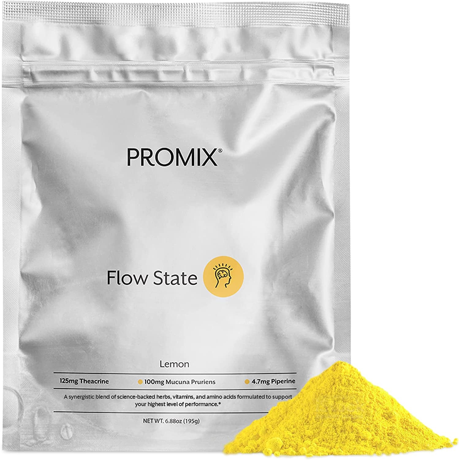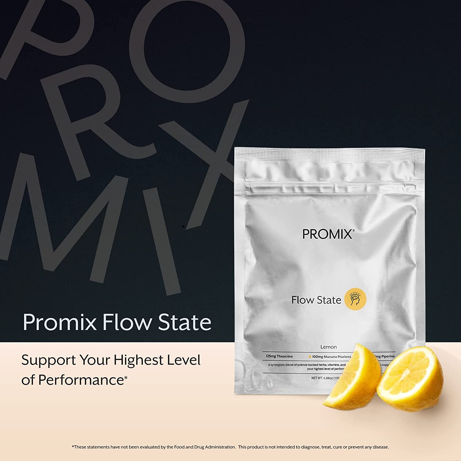 - Promix Flow State is a synergistic blend of herbs, vitamins, and amino acids formulated to support you to the highest level. It supports productivity and motivation, and clarity and concentration. Lemon flavor. 30 servings per container. Do not exceed 2 servings a day.