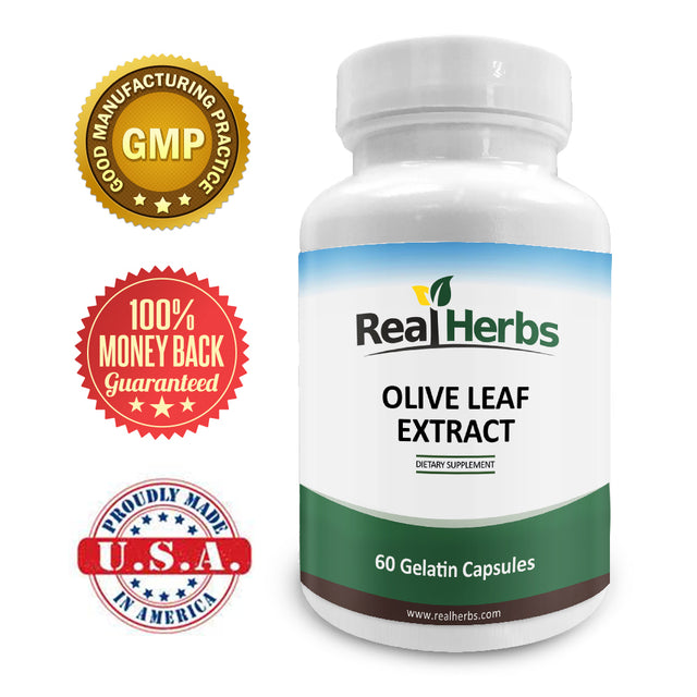 "THE REAL HERBS OLIVE LEAF DIFFERENCE Real Herbs Olive Leaf Extract capsules supports cardiovascular health by maintaining normal blood pressure and arterial health through reduced oxidation of LDL-cholesterol and helping blood vessels to relax. It has a polyphenol compounds that directly reduce the formation of arterial plaque and reduce platelet aggregation. It helps reduce inflammation & has properties beneficial for the cardiovascular health. All products are manufactured in the United States with the highest quality and safety. We establish stringent quality control standards in our state-of-the-art manufacturing facility and manufacture all our supplements to exceed expectations set by current Good Manufacturing Practices. Real Herbs continues to grow hand in hand with the uncompromised quality and integrity of our products. Using only the best ingredients and stringent manufacturing process, Real Herbs products boast of the highest quality ingredients available to date. Manufactured at GMP certified facilities and having passed through a series of stringent testing procedures, we stop at nothing to give you the purest and highest quality supplements in the market. You will certainly get what you pay for as we give you the highest quality for your money’s worth!"