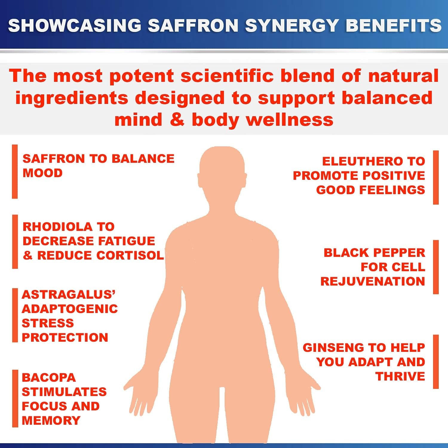 - FORTIFY and INVIGORATE not just your mind but also your body. Banish poor mood, stress and negative outlook, encourage positive mood, enhanced stamina, good sleep, mental clarity, calmer mind and body. Fortify and strengthen your body systems with a synergistic blend of adaptogen herbs. Reset body systems and balance brain substances to be resilient to stressors and life events. A stronger mind and body with Saffron Synergy