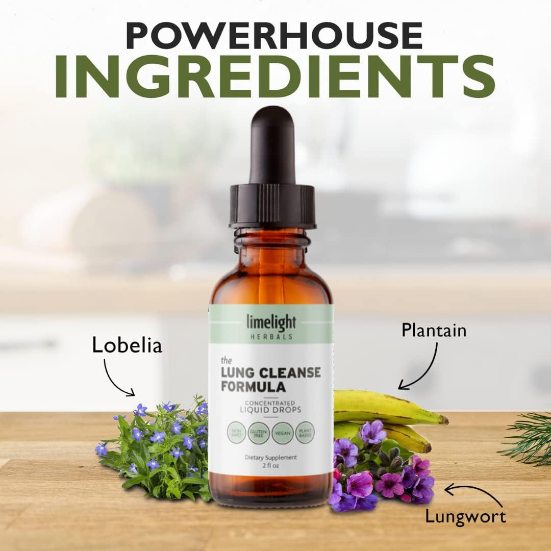 The Lung Cleanse Formula: Powerful Total Lung Detox - Optimize Lung Function - Sinus, Mucus, Bronchial Decongestant - Natural 3 Target Herbs - Lobelia, Lungwort, Plantain - 60 Servings, 2 Fl Oz