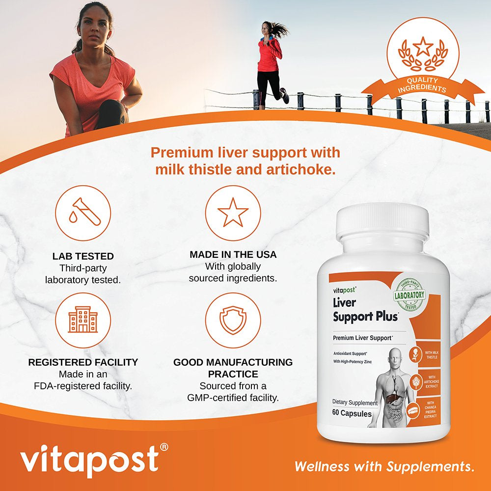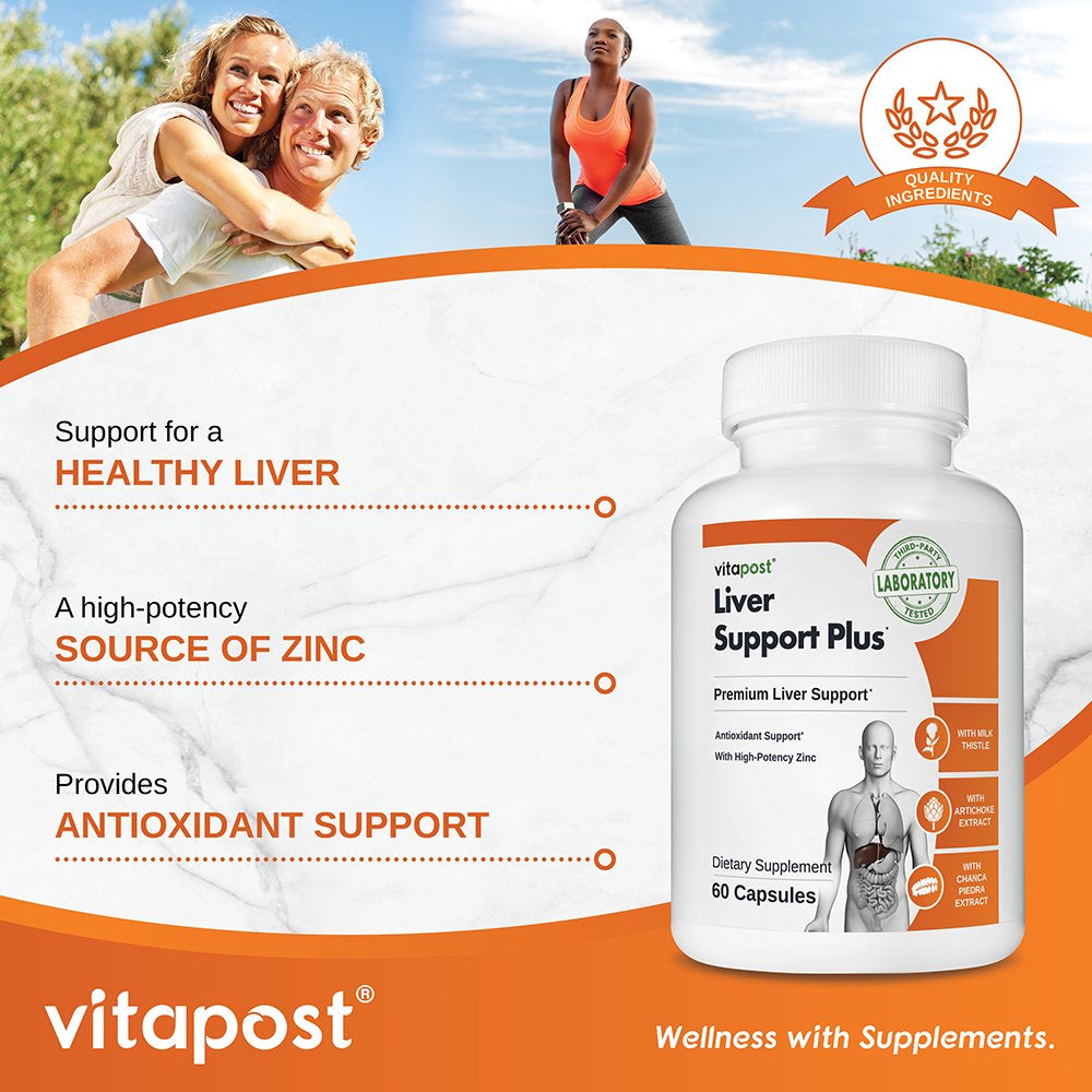 VitaPost’s Liver Support Plus dietary supplement naturally assists with nourishing and supporting your liver. It contains a high-potency source of zinc, which has shown significant antioxidant potential in the liver.