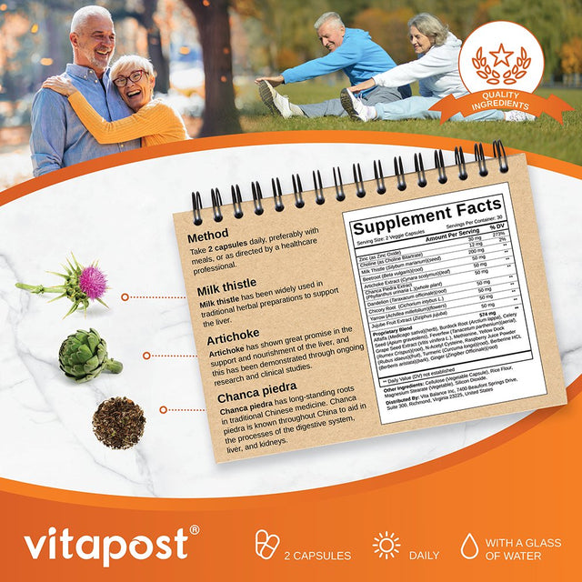 Vitapost Liver Support plus Supplement with Herbs and Botanicals - 60 Capsules