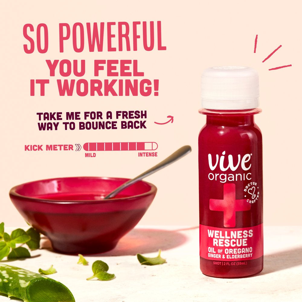 Vive Organic Wellness Rescue - Oil of Oregano (2Oz, 12 Count) Immunity Wellness Shot - a Fresh Way to Bounce Back - Potent Super Herbs, Ginger, Elderberry & Citrus Juice