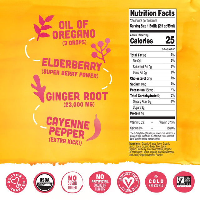 • HIGH STRENGTH POTENCY: Immune system booster with support from superfoods like ginger, elderberry, and oil of oregano. Feel something coming on? Bounce back faster. Zero Junk - No added sugar, no artificial ingredients or colors, and never watered down.