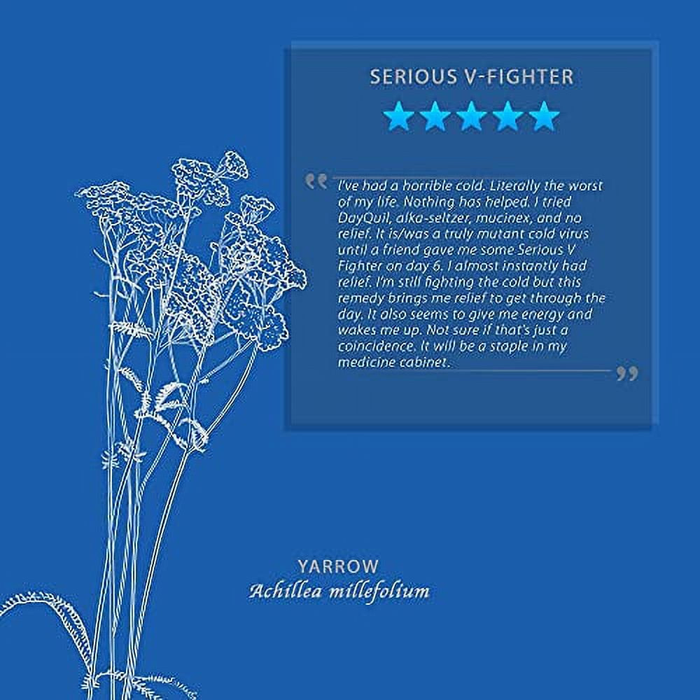 Serious V-Fighter is the herbal hero you need to promote healthy respiratory and immune system response. This natural winter season support tincture soothes the lower respiratory system and throat and supports a healthy lymphatic and respiratory response.This organic herbal tincture for seasonal illness is easily absorbed by the body and allows you to customize your serving so you can best meet your needs. Plus, it is convenient for on-the-go use and easy to swallow.Serious V-Fighter for natural cold relief contains:Goldenseal root: Used in traditional medicine to treat various ailments, particularly those involving microbial imbalance, digestive complaints and irritation of the mucus membranes.Elderflower: Supports a healthy inflammatory response in the sinuses. With its heat dispersing properties, Elderflower aids in boosting and optimizing the immune system and easing congestion and allergy responses.Bee Propolis: Made from plant resin and pollen, Bee Propolis is produced by bees to protect and seal the hives. The thick resinous substance helps soothe irritated respiratory tracts and throats while supporting the body's immune response.Myrrh gum: Myrrh gum is a sap-like substance or resin extracted from cuts in the bark of trees that are members of the Commiphora species. Used to make medicine, Myrrh helps relieve seasonal discomforts, indigestion, cough, difficulty breathing, and lung congestion.Other ingredients include Boneset aerials, Lomatium root, Yarrow aerials, Thyme leaf, Grindelia herb, Osha root, vegetable glycerine, 190 proof organic wheat grain gluten-free alcohol and Rocky Mountain artesian spring water.Instructions:Take 3mL in a little water; if needed, repeat in 5 minutes; or as practitioner recommended. For persistent discomforts, take 3mL every 1-3 hours for a day or two, then taper off to 3-4x/day.