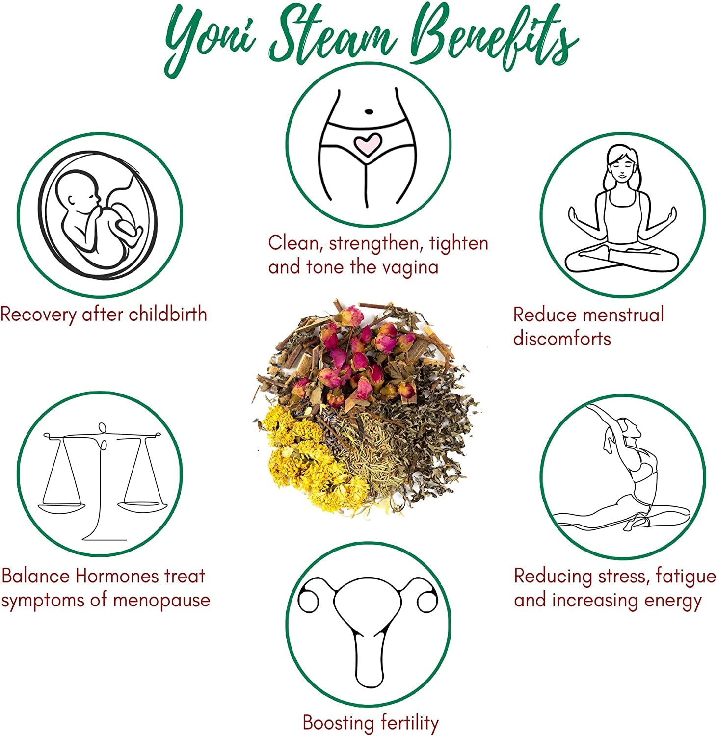 Revitalize Energy and YoniAre you being stressed out from work, aging, responsibilities,โฆ? Do they make you exhausted and lose interest in your relationship with your partner? Let Yoni Steam heals you, casts away your worries and brings you new positive energy. | Relieve Menstrual DiscomfortsNo more struggling with your symptoms during menstrual cycles. Yoni Steaming Kit will help you relieve painful cramps, gas, tiredness and heavy flows. | Recover After ChildbirthYoni steam is a wonderful therapy to heal, cleanse and tone the reproductive system after birth. It clears the remaining material from the uterus after birth, assist with the repair of a vaginal tear, scars, and encourage the tissue to tighten. | Balance HormonesYoni Steam improves hormone balance and menopause symptoms, boosts fertility, lifts your spirit and makes you love yourself more. |