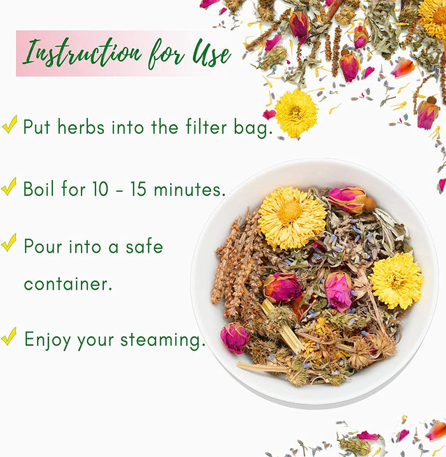 Each kit contains a blend that is enough for 3-6 steams, packaged in a zipper bag that allows your herbs to be well-preserved after opening.