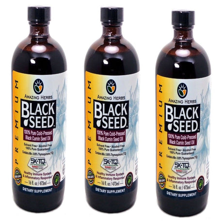Amazing Herbs Cold-Pressed Black Cumin Seed Oil for Immunity 16Oz (Pack of 3)