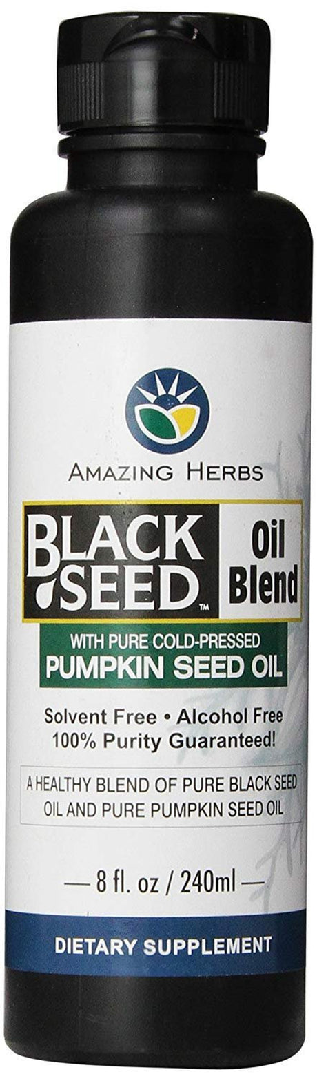 Amazing Herbs Black Seed W/ Pure Cold Pressed & Pumpkin Seed Oil Blend, 8Oz