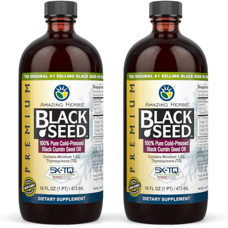 Amazing Herbs Cold-Pressed Black Cumin Seed Oil for Immunity 16Oz (Pack of 2)