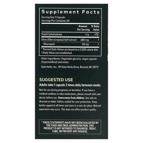 Gaia Herbs, Olive Leaf, 60 Vegan Liquid Phyto-Caps