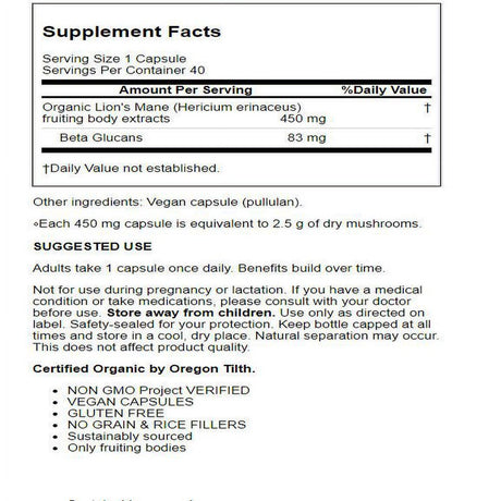 Gaia Herbs Lion'S Mane Mushroom 40 Vegan Caps