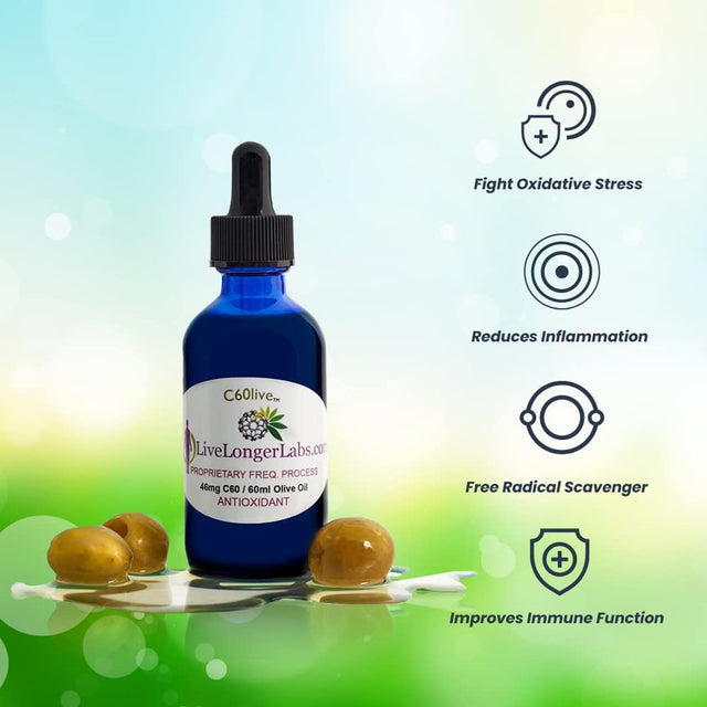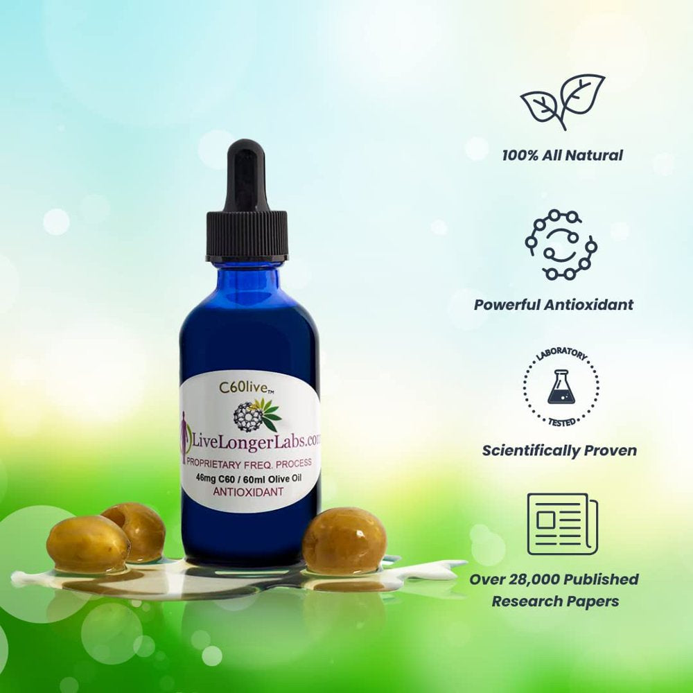 - NATURAL INGREDIENTS: C60live product line by Live Longer Labs is dedicated to making top-notch antioxidant supplements to better support your health and wellness. Always solvent-free, C60 Olive Oil drops are made with pure and natural ingredients—scientifically formulated with just the potent antioxidant combination of ultra-pure carbon 60 and extra virgin olive oil.