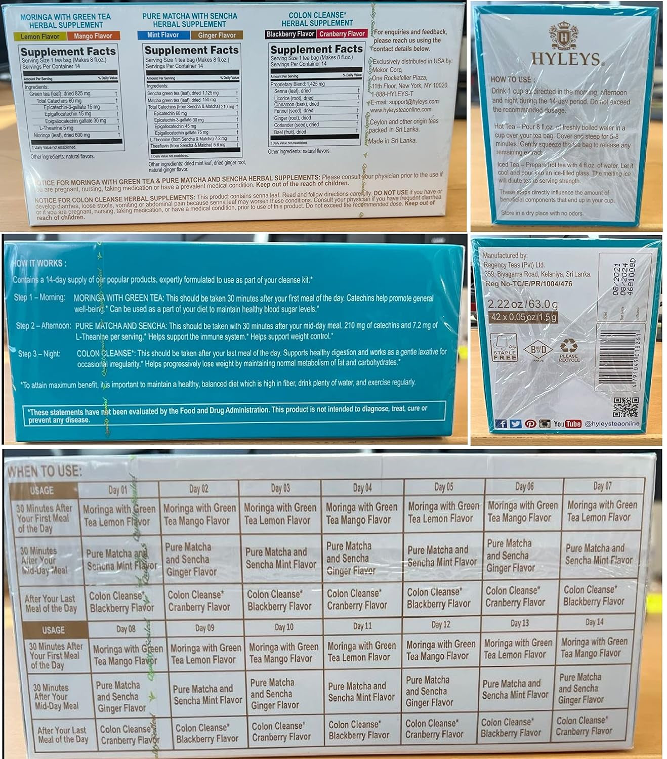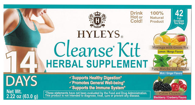 12 Pack of Hyleys Wellness 14 Days Cleanse Kit - 42 Tea Bags (100% Natural, Sugar Free, Gluten Free and Non-Gmo) - 14 Day Cleanse Kit / 42 Count (Pack Of 12) is backordered and will ship as soon as it is back in stock.