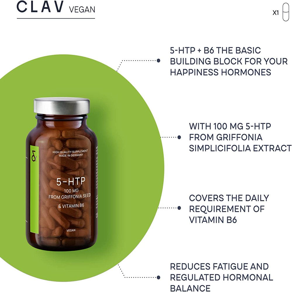 - CLAV 5 HTP Capsules High Strength - Our high dose 5 HTP supplement is suitable for daily intake and is a natural serotonin booster. We added vitamin B6 to our 5-HTP Plus complex to support nerves and psyche.