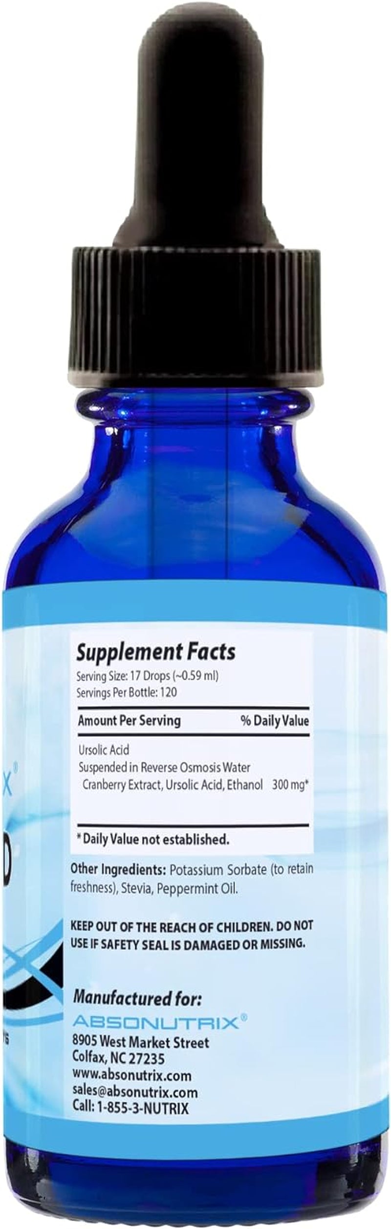Absonutrix Ursolic Acid 300Mg, 4 Fl Oz Bottle, 120 Highly Potent Servings, High Bioavailability, Quick Absorption, Third-Party Tested, Gmp-Certified, Non-Gmo, Cruelty-Free Products, Made in USA