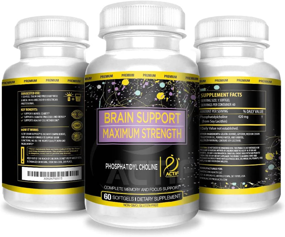 Actif Brain Mega Support with Phosphatidylcholine - Non-Gmo, Fast-Acting, Made in USA, 60 Count
