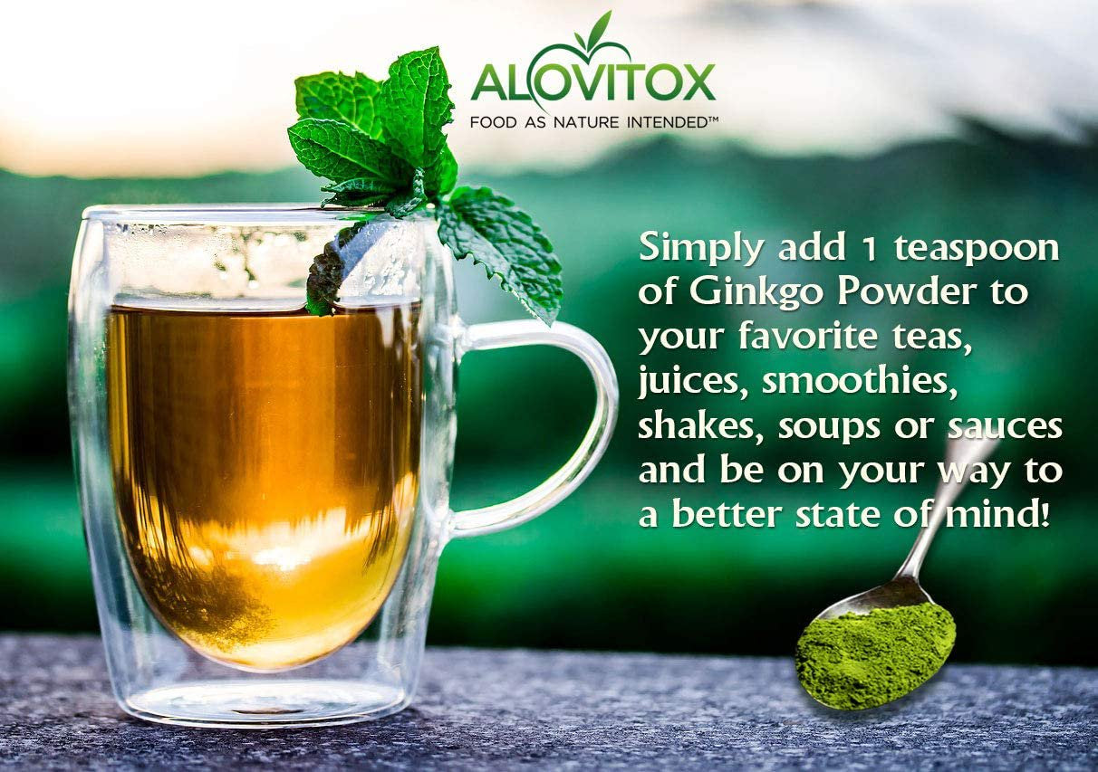 Alovitox Ginkgo Biloba Organic Leaf Powder | Supports Aging, Memory, Focus, Mood Stability, Concentration – Pure 100% Natural, Vegan, Non GMO & USDA Certified 8 Oz