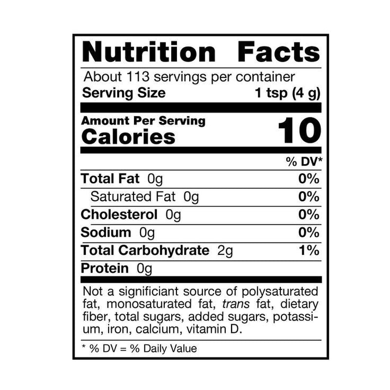 | Nutrient Content Claims | Alcohol-Free, Kosher, Natural, Fat-Free, Vegan |