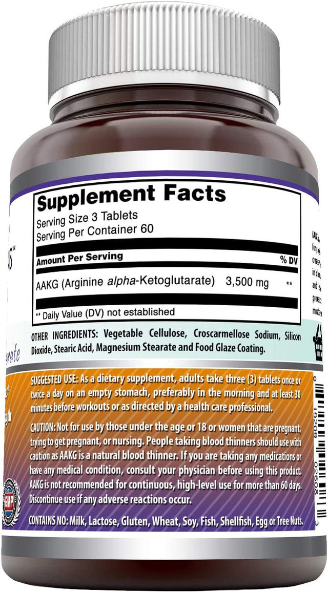 - AAKG Arginine Alpha-Ketoglutarate 3500 Mg Per Serving, 180 Tablets Supplement