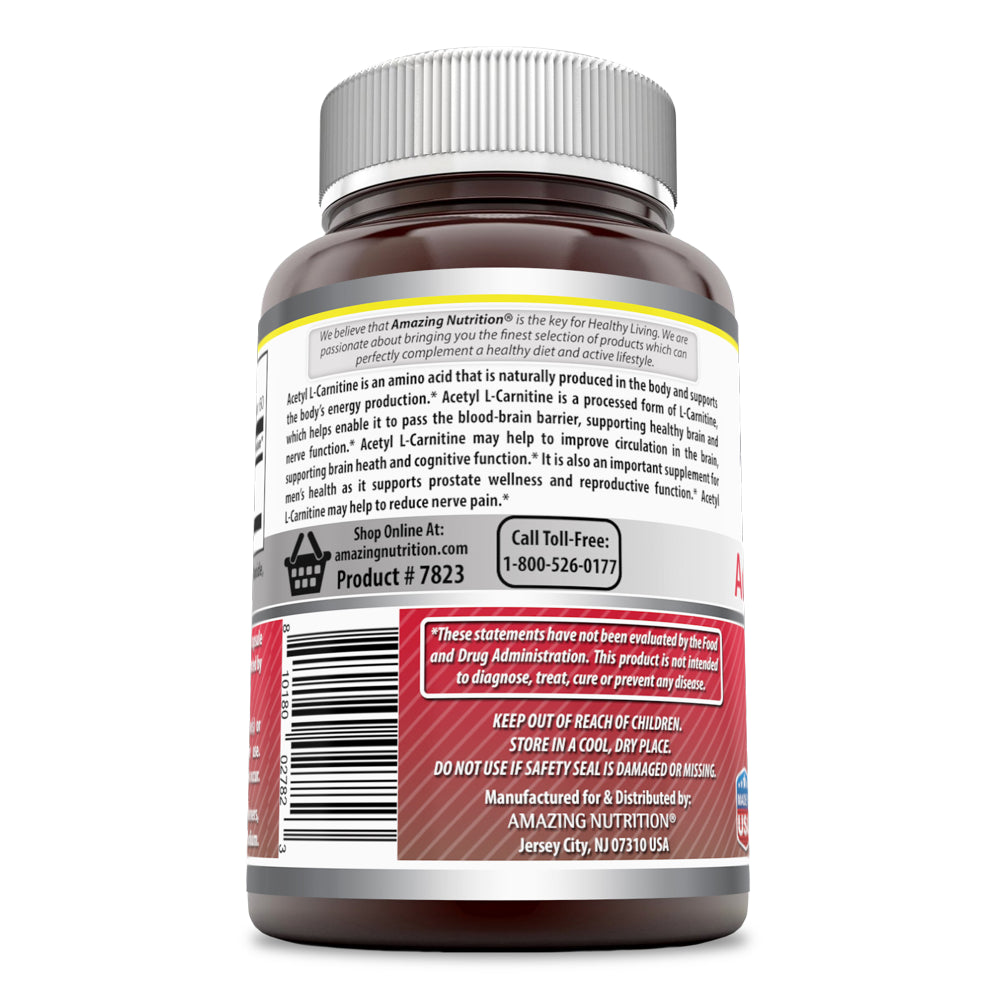 Amazing Formulas Acetyl L-Carnitine Hcl Veggie Dietary Supplement - 500Mg 60Veggie Capsules (Non Gmo,Gluten Free) per Bottle - Promotes Energy Production & Cognitive Function