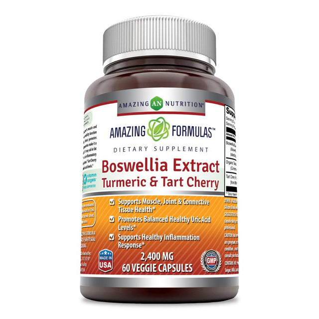 Amazing Formulas Boswellia Extract Turmeric & Tart Cherry 2400Mg Veggie Capsules (60 Count) (Non Gmo,Gluten Free) -Supports Muscle, Joint & Connective Tissue Health, Inflammation Response.