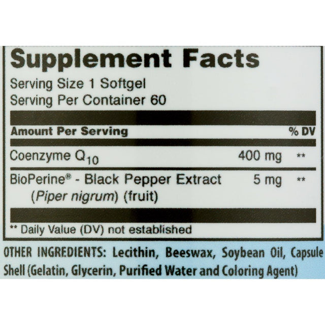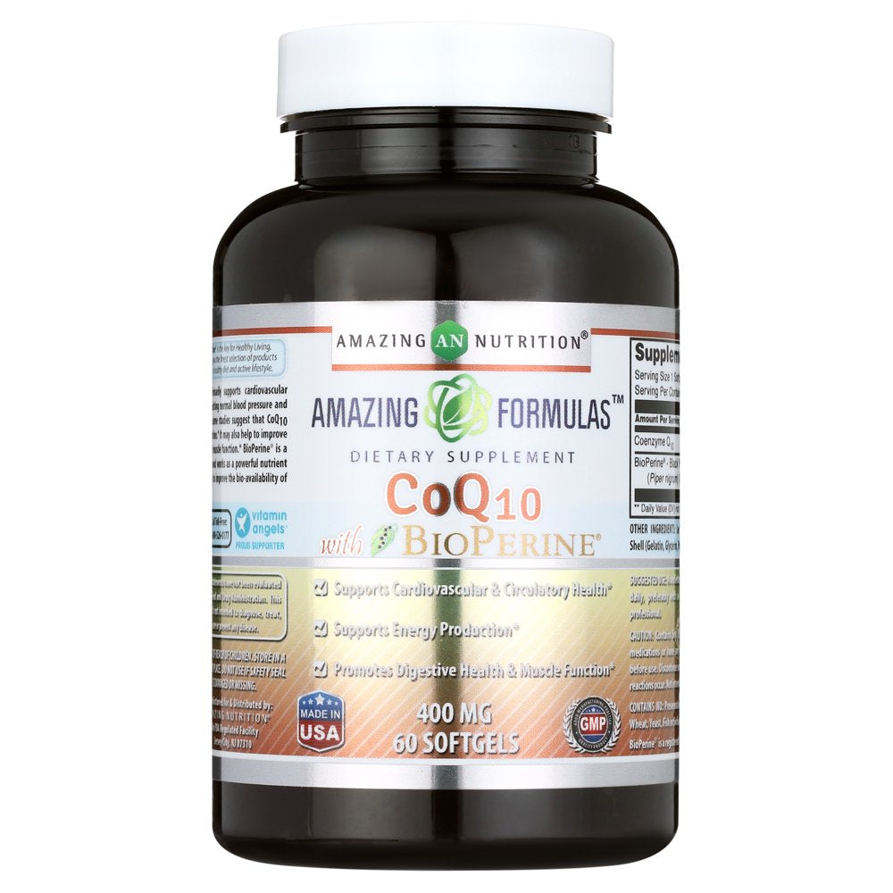 Amazing Formulas Coq10 (Coenzyme Q10) 400 Mg (Non-Gmo,Gluten Free)- 60 Softgels. Coenzyme Q10 Is Key for the Proper Function of Many Organs * Coq10 Primarily Supports Cardiovascular Health