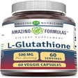 Amazing Formulas L-Glutathione 500 Mg 60 Veggie Capsules | Non-Gmo | Gluten Free | Made in USA | Suitable for Vegetarians