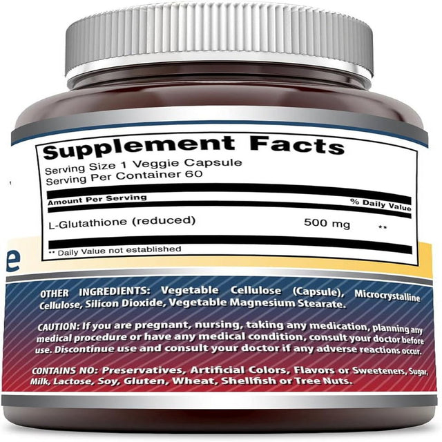 Amazing Formulas L-Glutathione 500 Mg 60 Veggie Capsules | Non-Gmo | Gluten Free | Made in USA | Suitable for Vegetarians - 120 is backordered and will ship as soon as it is back in stock.
