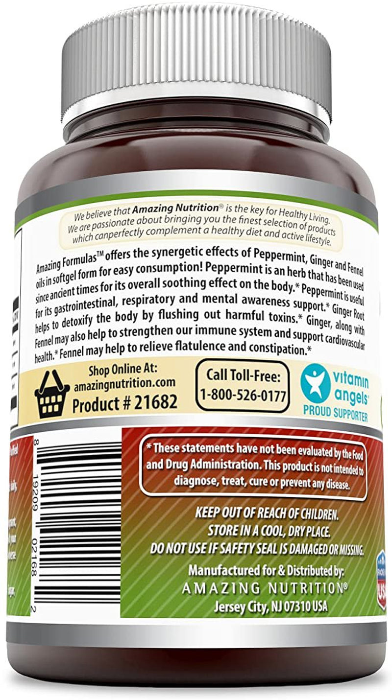 Amazing Formulas- Peppermint, Ginger and Fennel Dietary Supplement - 363 Milligrams - 120 Softgels (Non-GMO,Gluten Free) - Supports Digestive Functions - May Soothe Upset Stomach