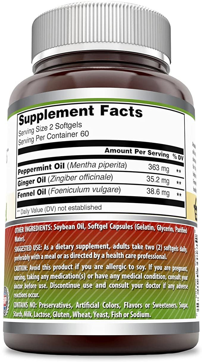 Amazing Formulas- Peppermint, Ginger and Fennel Dietary Supplement - 363 Milligrams - 120 Softgels (Non-Gmo,Gluten Free) - Supports Digestive Functions - May Soothe Upset Stomach