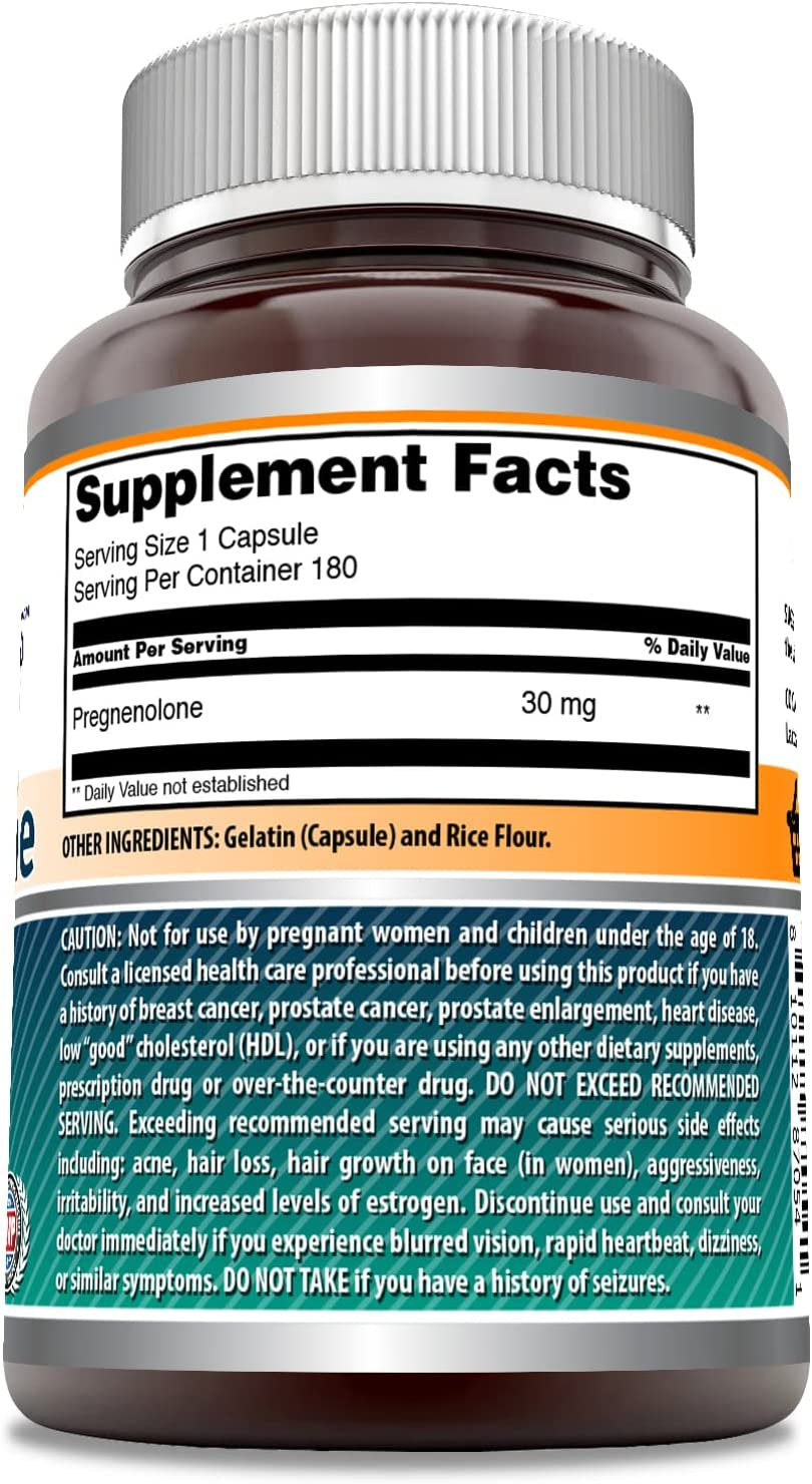 Amazing Formulas Pregnenolone 30Mg 180Capsules Dietary Supplement (Non-Gmo, Gluten Free) - Promotes Hormonal Balance - Supports Energy Production*