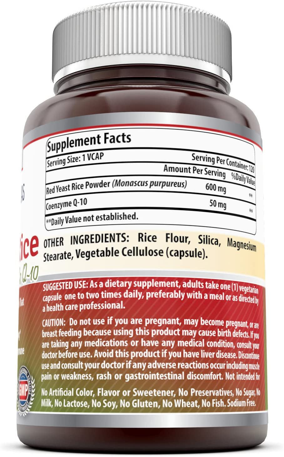 Amazing Formulas Red Yeast Rice 600 Mg plus Co Q-10 50 Mg 120 Vegetarian Capsules (Non-Gmo,Gluten Free) Supports Cardiovascular Health,Healthy Weight Management and Overall Healthy and Well Being
