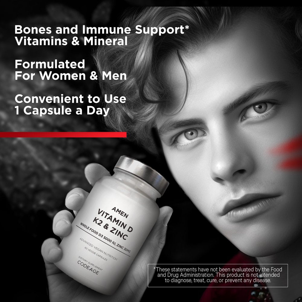 Amen Vitamin D, K2 & Zinc, Cholecalciferol D3 5000 IU, Organic Whole Food Blend, Non-Gmo, 60 Ct