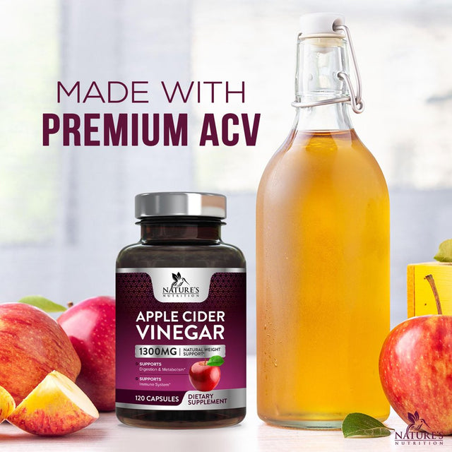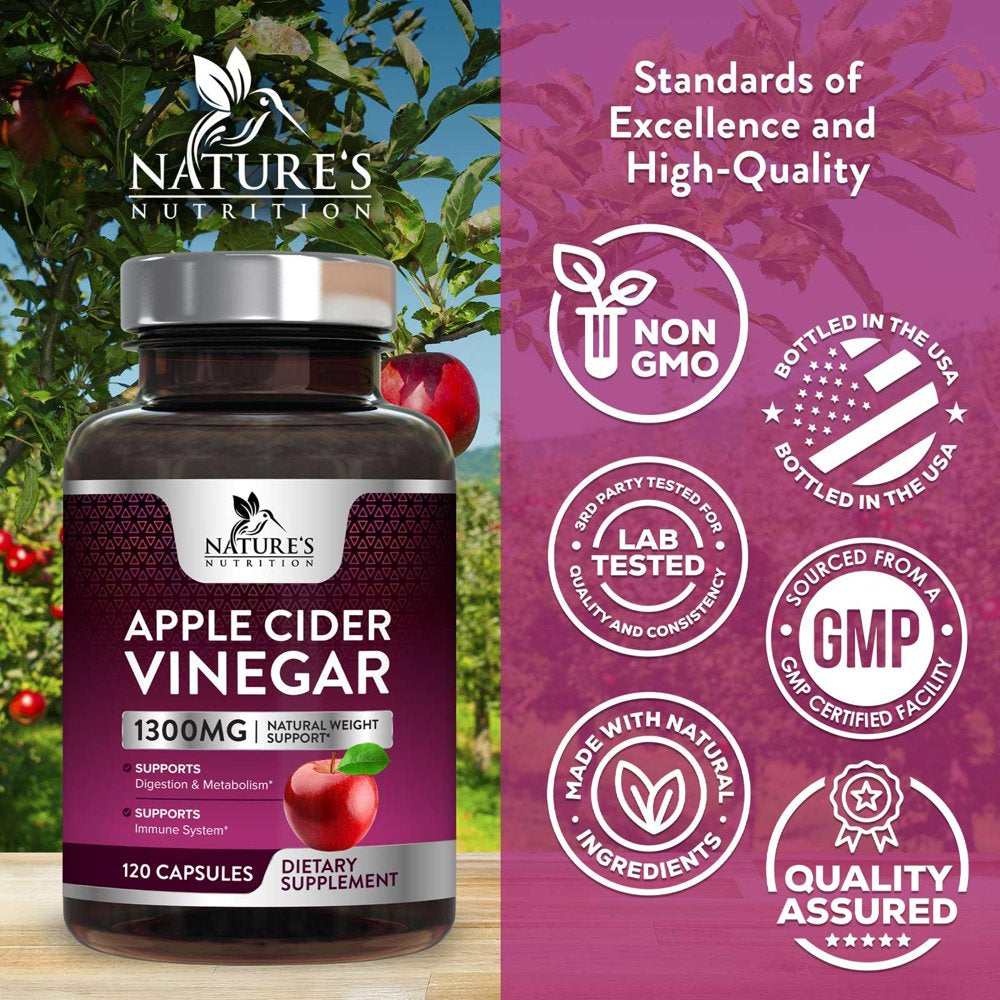 Nature's Nutrition Premium Apple Cider Vinegar Supplement provides high quality non-GMO and gluten free ACV for digestion, keto, detox, and much more.