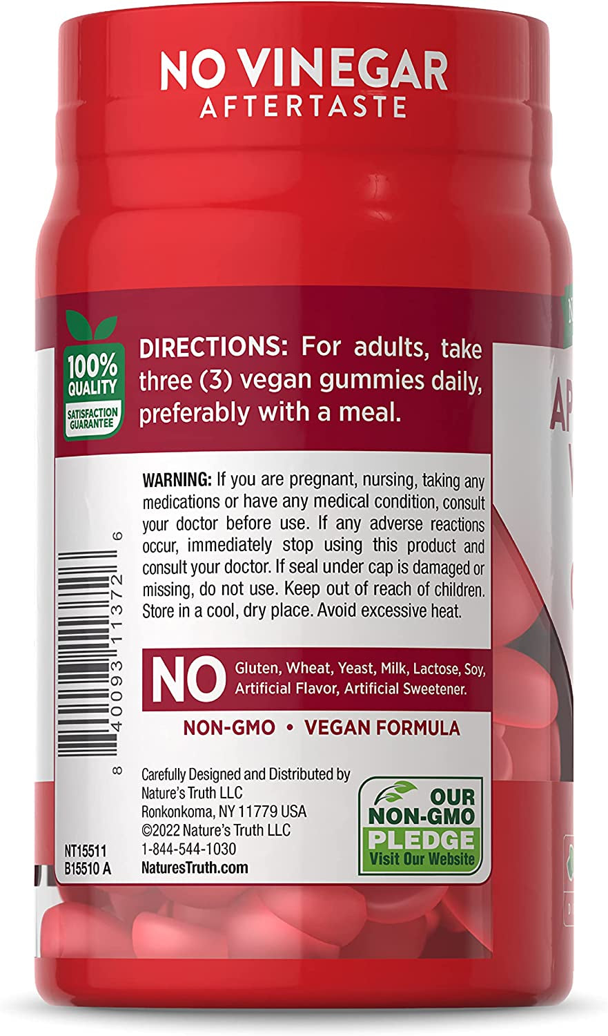 Apple Cider Vinegar Gummies | 600 Mg | 75 Gummies | Natural Apple Flavor | Vegan, Non-Gmo, Gluten Free Supplement | by Nature'S Truth - 75 Count (Pack Of 1) is backordered and will ship as soon as it is back in stock.
