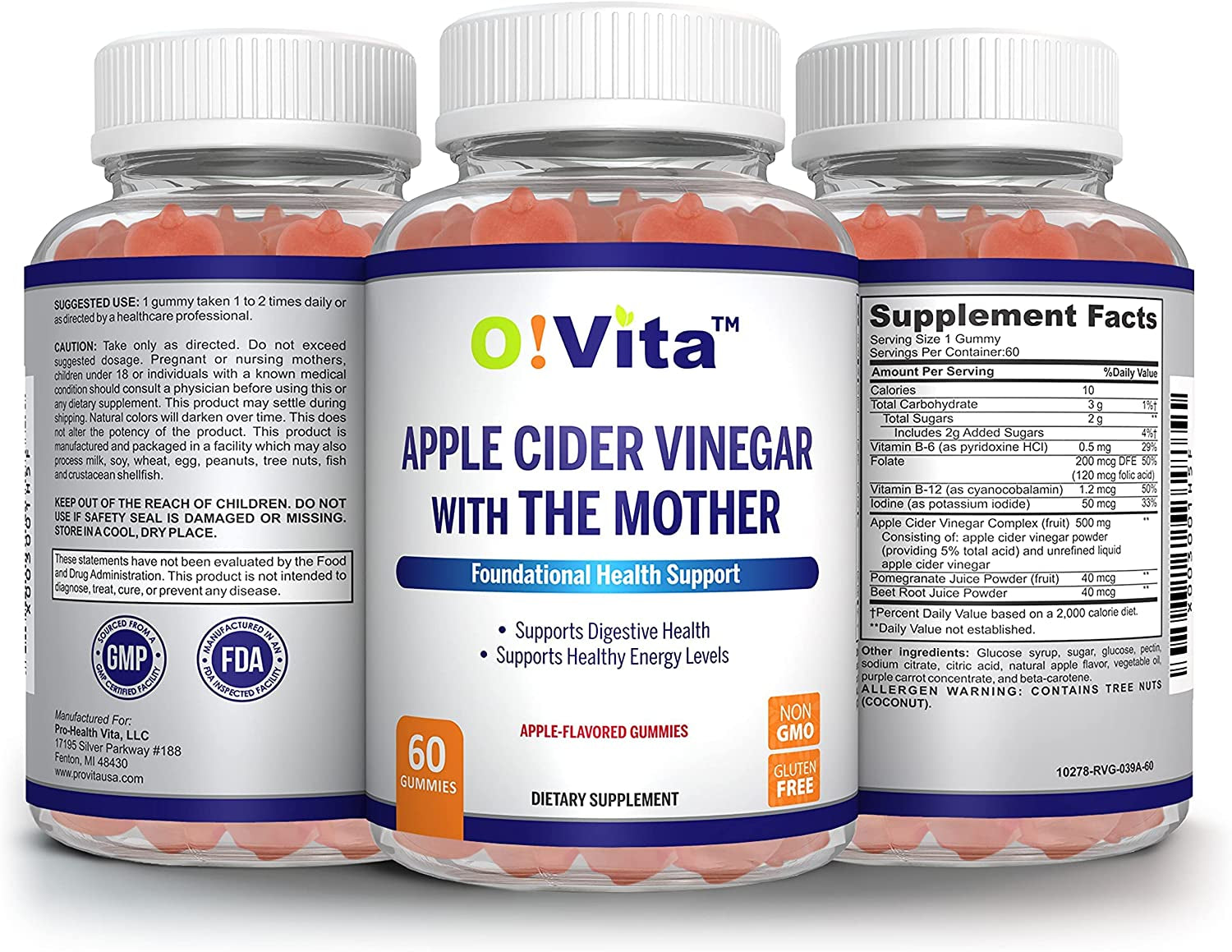 More than just Apple Cider VinegarO!VITA ACV gummies contains more than just apple cider vinegar. This product also provides vitamins B6, B12, pomegranate juice powder and beet juice powder for your foundational health. | Made from the MotherOur product is with unrefined liquid apple cider vinegar containing "the Mother", our bottle is full with 60 gummies. One gummy a day, this bottle provides a 2-month supply of deliciously apple flavored gummies. | Vegan formulaO!VITA Apple Cider Vinegar gummies are completely vegan and non-GMO. This means the ingredients of the product rich in nutrients, grown naturally, clean and healthy. |