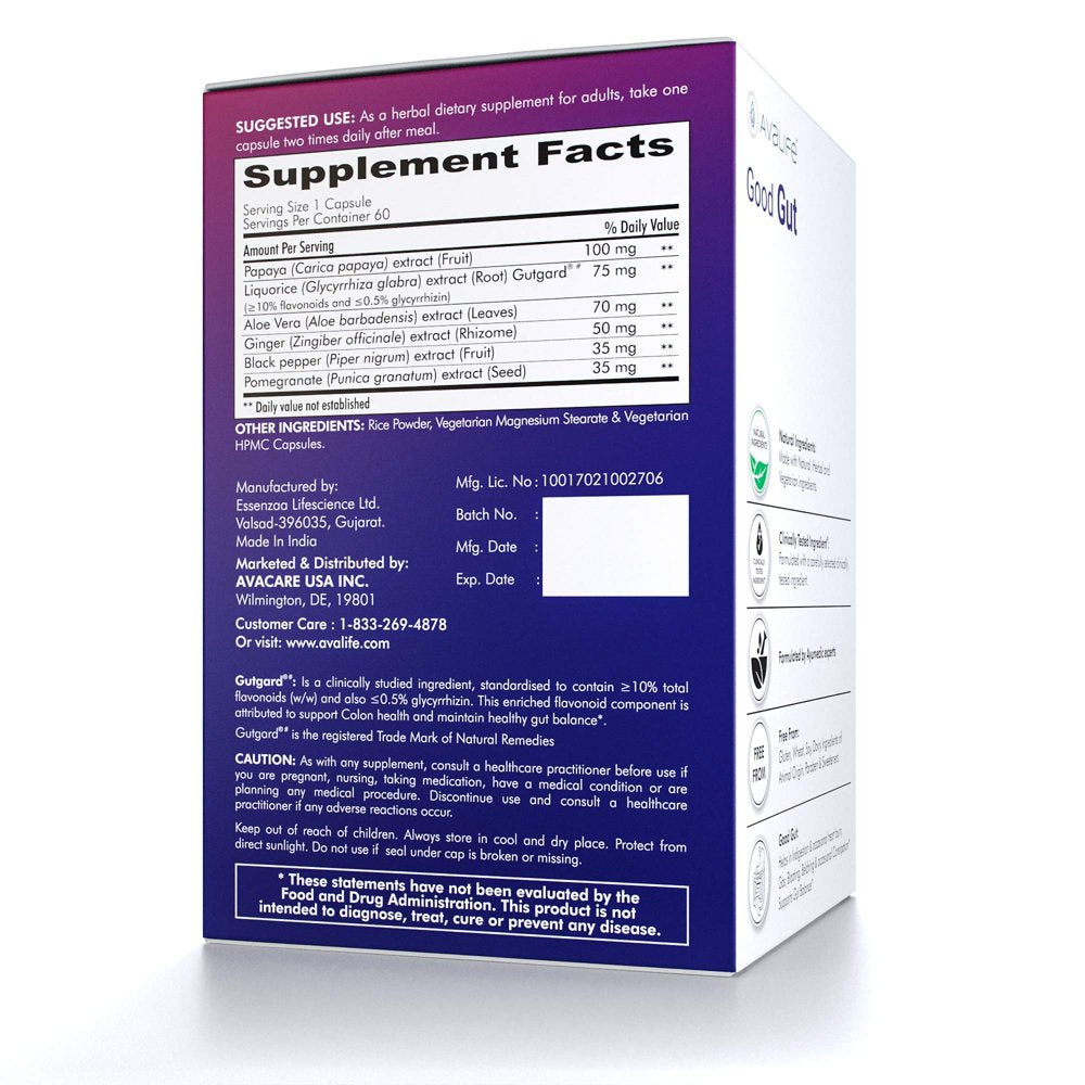 *Avalife Good Gut is formulated with a combination of clinically tested, unique, innovative DGL Liquorice root extract (Gutgard) and other Ayurvedic herbs to help maintain the perfect balance of your gut microbiomes.
