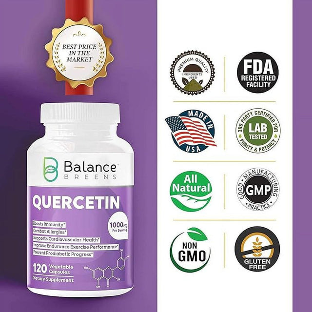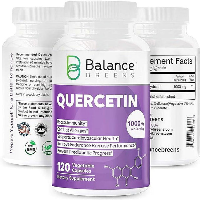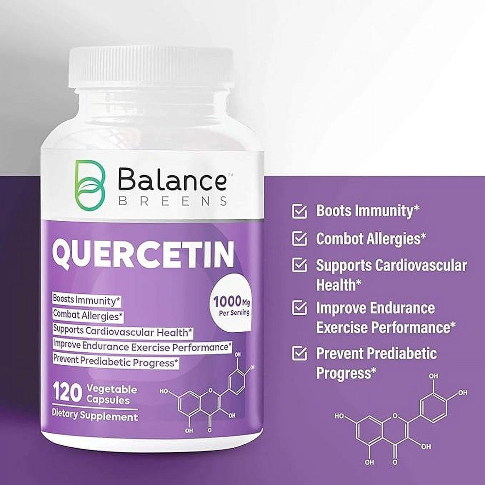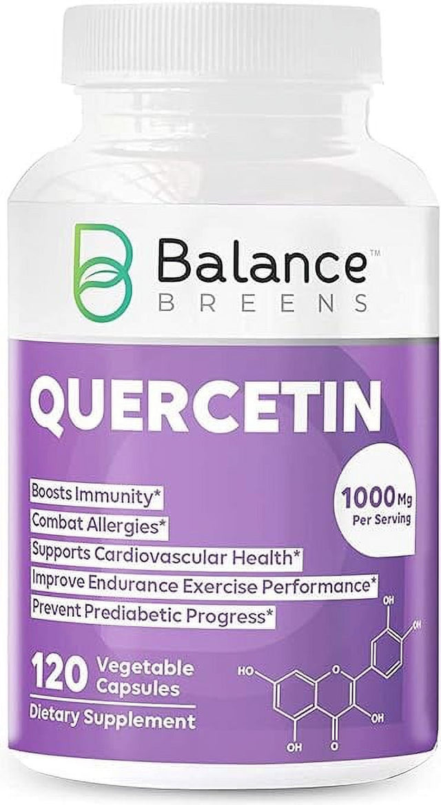 Balance Breens Quercetin 1000Mg Supplement - Supports Cardiovascular Health, Immune Response & Allergy Support - 120 Vegetable Non-Gmo Capsules