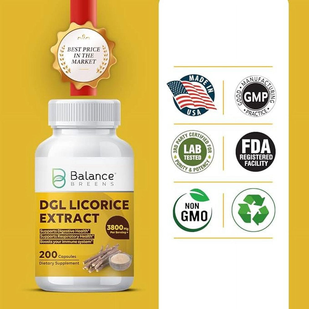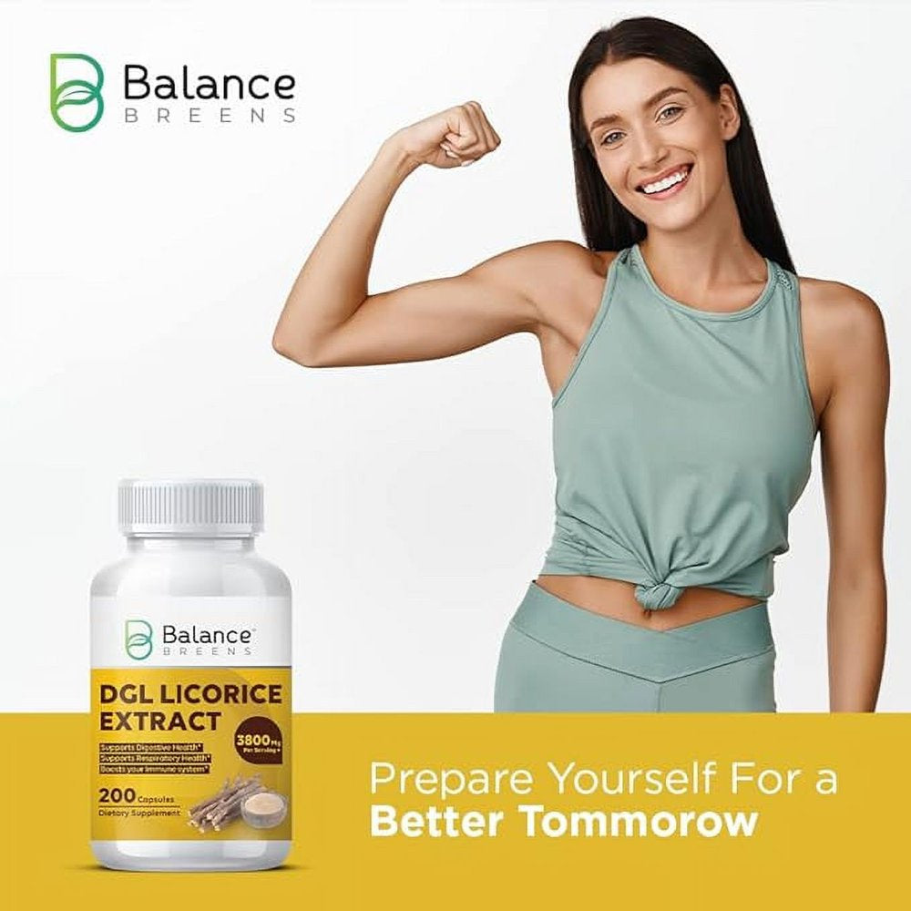 Balancebreens DGL Deglycyrrhizinated Licorice 3800 Mg Supplement - 200 Non-Gmo Capsules - Digestive Enzymes, Promote Gut Health, Acid Reflux, Digestion and Heartburn Support