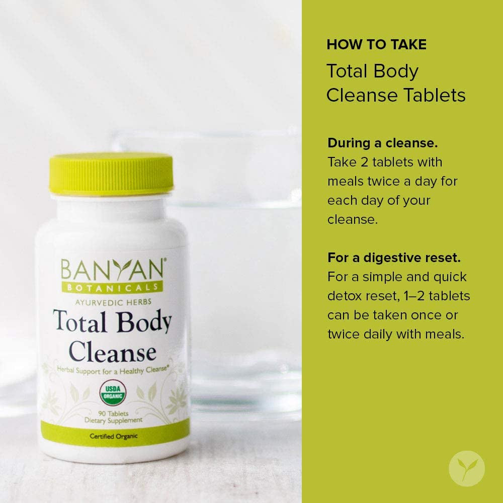 • SUPERCHARGE YOUR AYURVEDIC CLEANSE with Total Body Cleanse tablets. While many cleansing supplements target a specific organ like the colon, kidney, or liver, Total Body Cleanse supports the body’s natural detoxification process—flushing natural toxins from the whole body for a complete cleanse.*